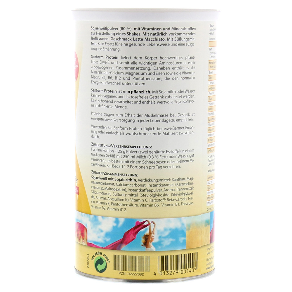 2 столовые ложки белка SANFORFORM (25G) наряду с 250 мл с низким содержанием жирного молока, молока без лактозы или соевого молока (или воды) в шейкере сквалительно или хорошо перемешают со взбитом. * С соевым молоком или водой может быть подготовлен веганский напиток.