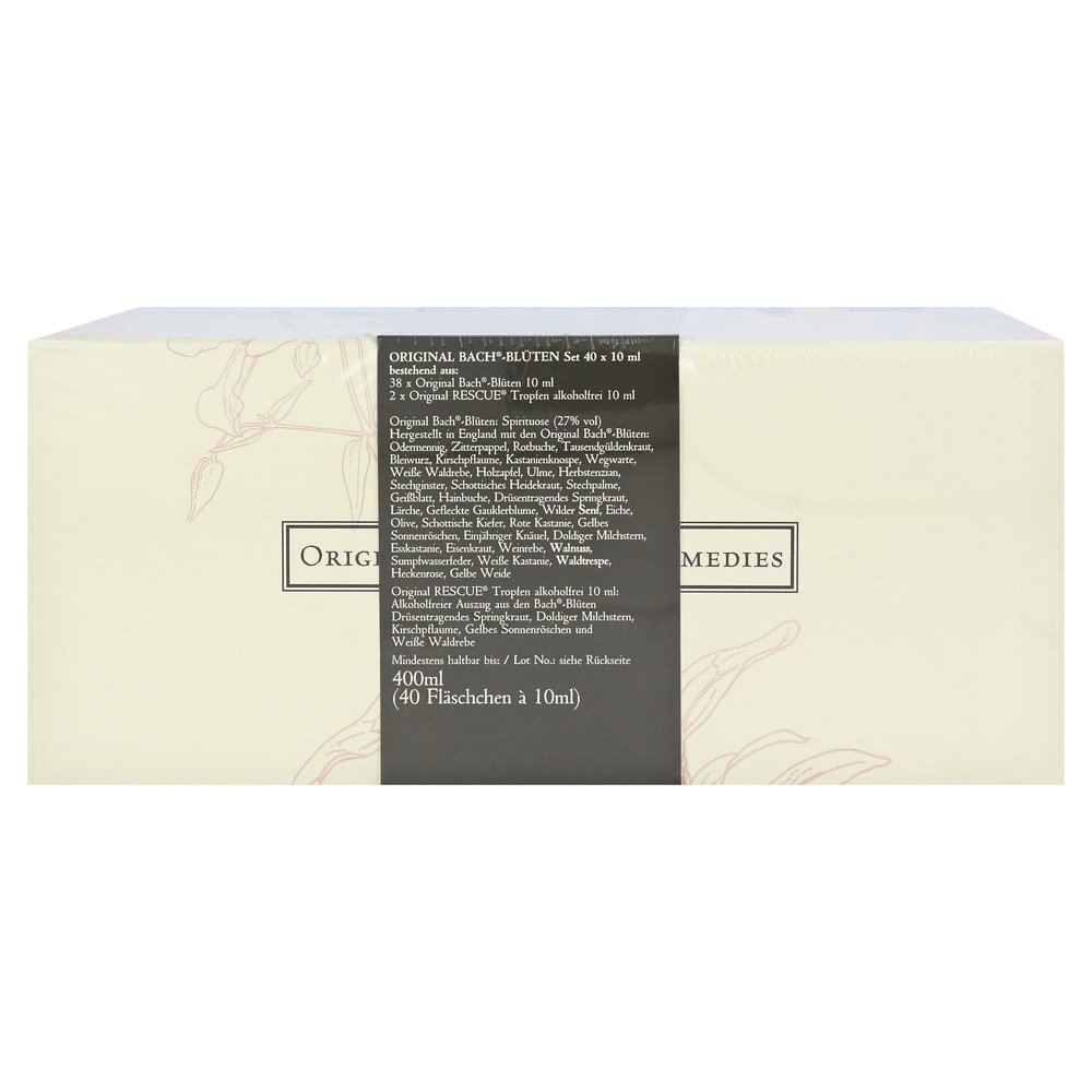 Оригинальные цветы Bach предлагаются в премиум-классном комплектации по 10 мл варианта. Набор 10 мл в декоративной картонной коробке содержит рядом с оригинальными цветочными эссенциями Bach 1-38 каждые 2 бутылки оригинальных спасательных капли алкоголя. 10 мл бутылки не доступны индивидуально, а только в этом наборе.