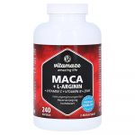 Пищевая добавка VitaMaze Maca + L-аргинин + витамины + цинк содержит экстракт Macawurel, L-аргинина, витамин С, витамин B12, витамин B6 и цинковый микроэлемент. Пакет из 240 капсул обеспечивает 2-месячное постоянное питание.