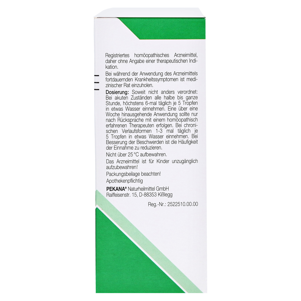 Если иное не установлено: с острыми состояниями каждую половину до полного часа, не более 6x ежедневно 5 капель каждого возьмут в небольшую воду. Приложение за неделю должно быть сделано только после консультации с гомеопатическим опытным терапевтом. При хронических стандартах от 1 до 3X ежедневно каждый взять 5 капель в небольшой воде. При улучшении жалоб, частота применения должна быть уменьшена.