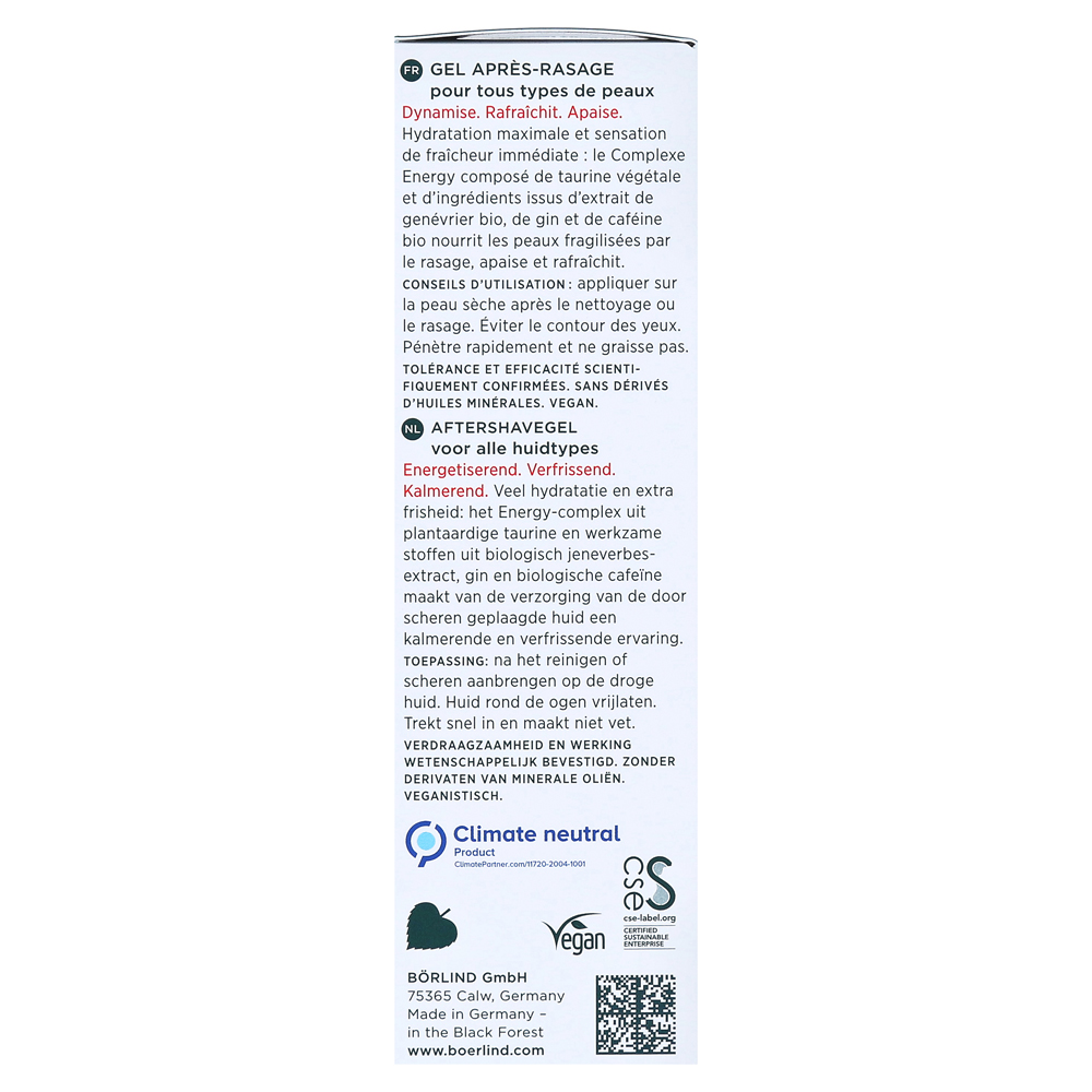 Гель после бритья из мужчин Börlind с органическим экстрактом Vanchholder, а также овощной таурин успокаивает кожу лица, раздраженной бритью. После нанесения геля, который быстро кормит, выгоду от освеженной кожи, которая снабжена достаточной влажностью.