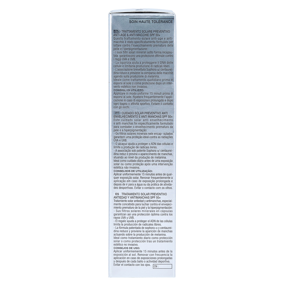 Различные фильтры защиты от света предлагают оптимальную защиту УФ. Sophora Alpha и Centauridin уменьшает пигментные пятна и одновременно защищают против повторения.