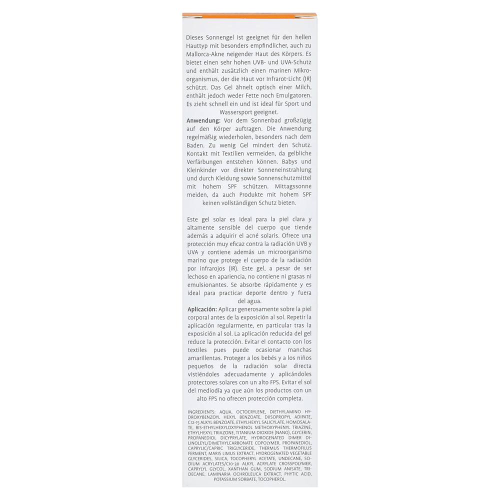Солнечный гель SPF 50+ для организма особенно подходит для тела для яркости, а также в типах кожи, как правило, уплотнения для Майорки.