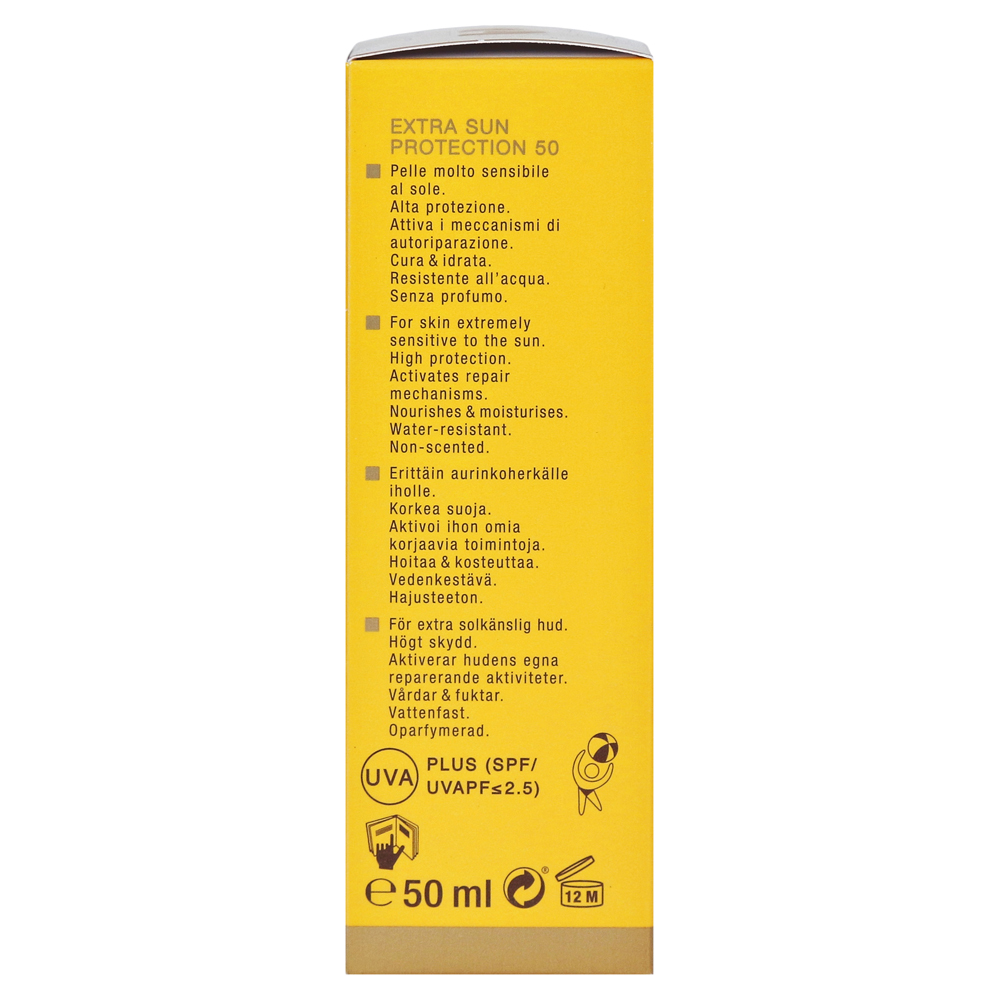 Комбинация высокодоза УВА, UVB и широкополосных фильтров обеспечивает очень высокую защиту. Немаловая неманная немана, не жирная эмульсия быстро принимает быстро. Дополнительная защита от солнца 50 защищает от UVA и UVB Rays, кормящих и увлажняющих кожу.