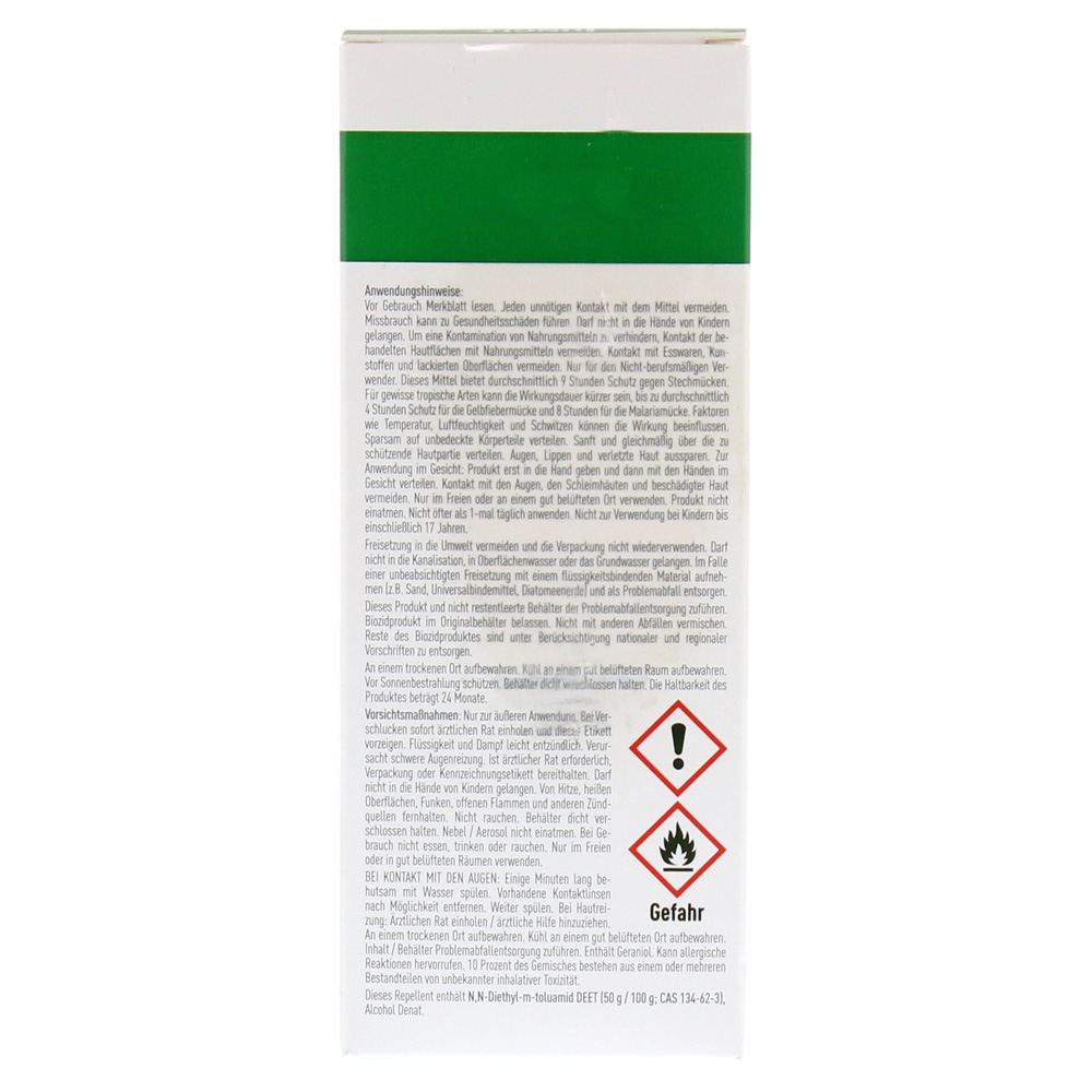 Активное вещество Deet 50% составляет до 9 часов * защиты и особенно эффективна против Tigermoskitos.