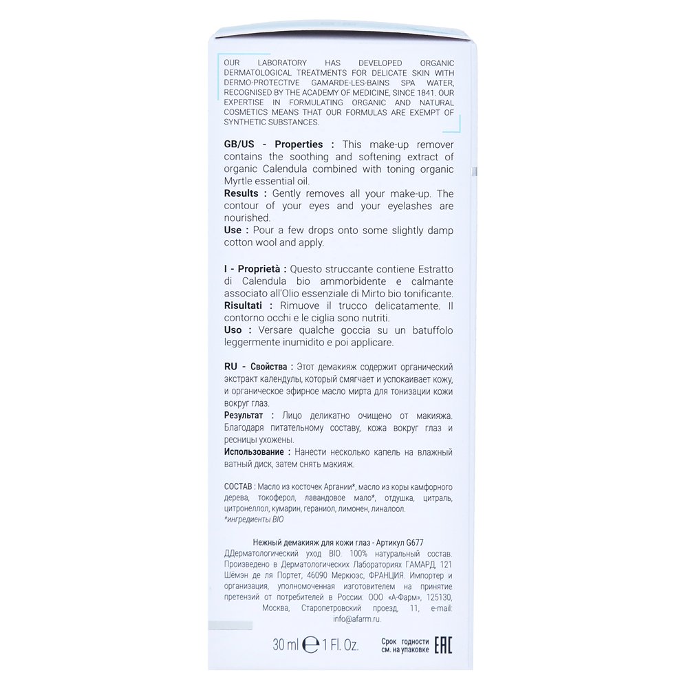 Удаление макияжа глаз является особенно дружелюбным к кожу из-за своего рецепта с экстрактом кальцина, миртл и арганским маслом и, следовательно, идеально подходит для нежной и тщательной очистки чувствительной области глаз.