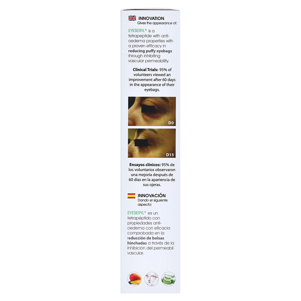 Инновационная сыворотка с активным ингредиентом глазами, тетрапептид с антиредумическими свойствами, может помочь уменьшить отек слезных мешков.