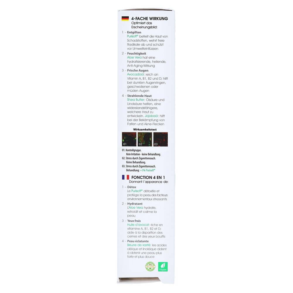 Кроме того, алоэ вера обеспечивает кожу интенсивно влаги. Включенное масло авокадо помогает против опухших, усталых глаз. Складные и угрейные пятна уменьшаются от жожоба масло — для лучистого поля.