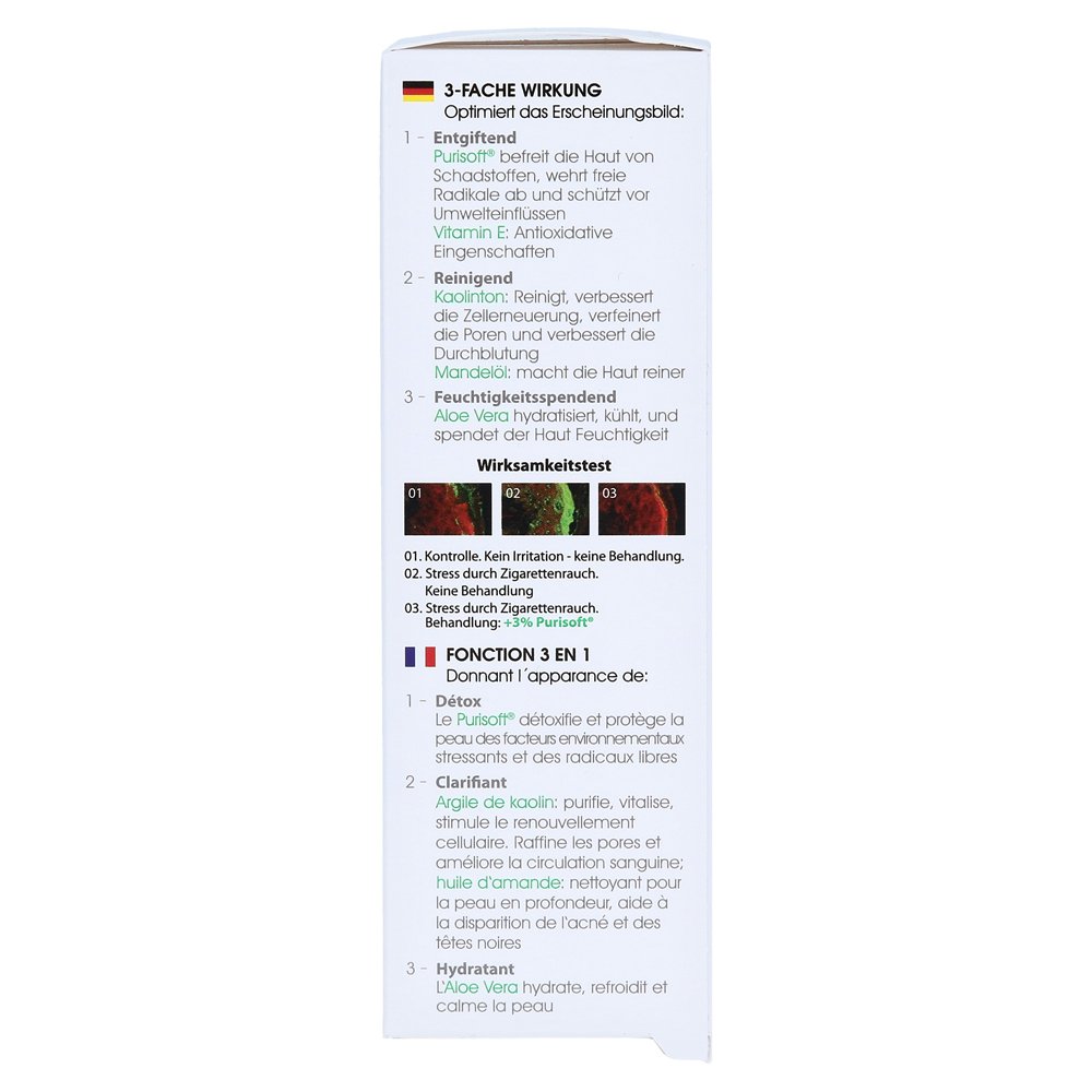 Очищающаяся аква-детоксичная маска для лица с семенами хрена уточняет кожу загрязняющих веществ и защищает от воздействия окружающей среды. Смазное масло, миндальное масло и алоэ вера и алоэ обеспечивают кожу интенсивно с влажностью. Содержимое масло шиповника стимулирует уровень кожи и регулирует функцию Sebum и сварочной железы. Хлопковое семенное масло активирует регенерацию клеток и действует антиокисление.