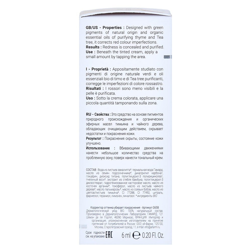 Крем Gamarde идеально подходит для корректирующей корректирующей корректирующей корректируемости Gamarde. Крем содержит зеленые пигменты из натурального происхождения, которые могут быть оптимально компенсированы для красных и таким образом ламинированных красноватых примесей. Крем предлагает оптимальную непрозрачность, а картина кожи кажется видимым сглаженным и даже даже. Кроме того, очистка основных тимьяна и масла чайных деревьев включены.