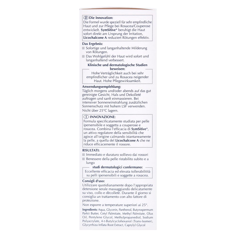 Антироиды Eucerin Успокаивающие уход особенно подходит для ухода за лицом с очень чувствительной кожей, кожей с розацеей и купором. ИНГРЕДИЕНТЫ СИМДИВЫМИ И ЛИКОХАЛКОНКОМ ОБРАЩАЮТСЯ С одной стороны, чтобы увеличить порог допуска чувствительной кожи и, с другой стороны, уменьшить покраснение с противовоспалительными и антиоксидапитационными свойствами.