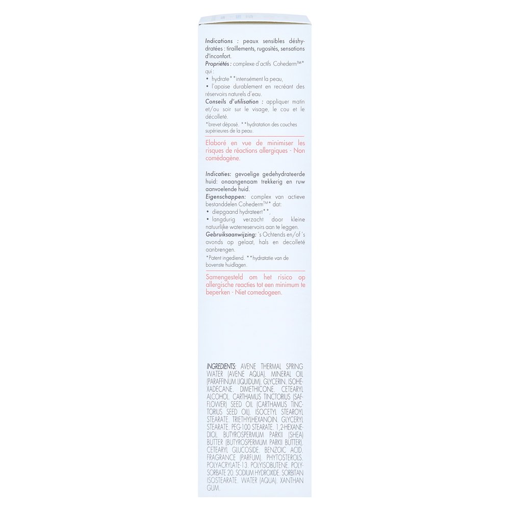 Богатая уход в влажнице со средством 30-го уровня защиты от света продолжает предоставлять кожу на влаге, а также защищает их от УФ-лучей. Тепловая вода Avène успокаивает кожу и эффекты противовоспалительной. Благодаря включенному активному ингредиенту Cohederm, в сочетании с защитными активными ингредиентами крем защищает кожу от свободных радикалов и вредных воздействий окружающей среды. Грубая кожа снова гладкая и натяжные чувства заметно уменьшены.