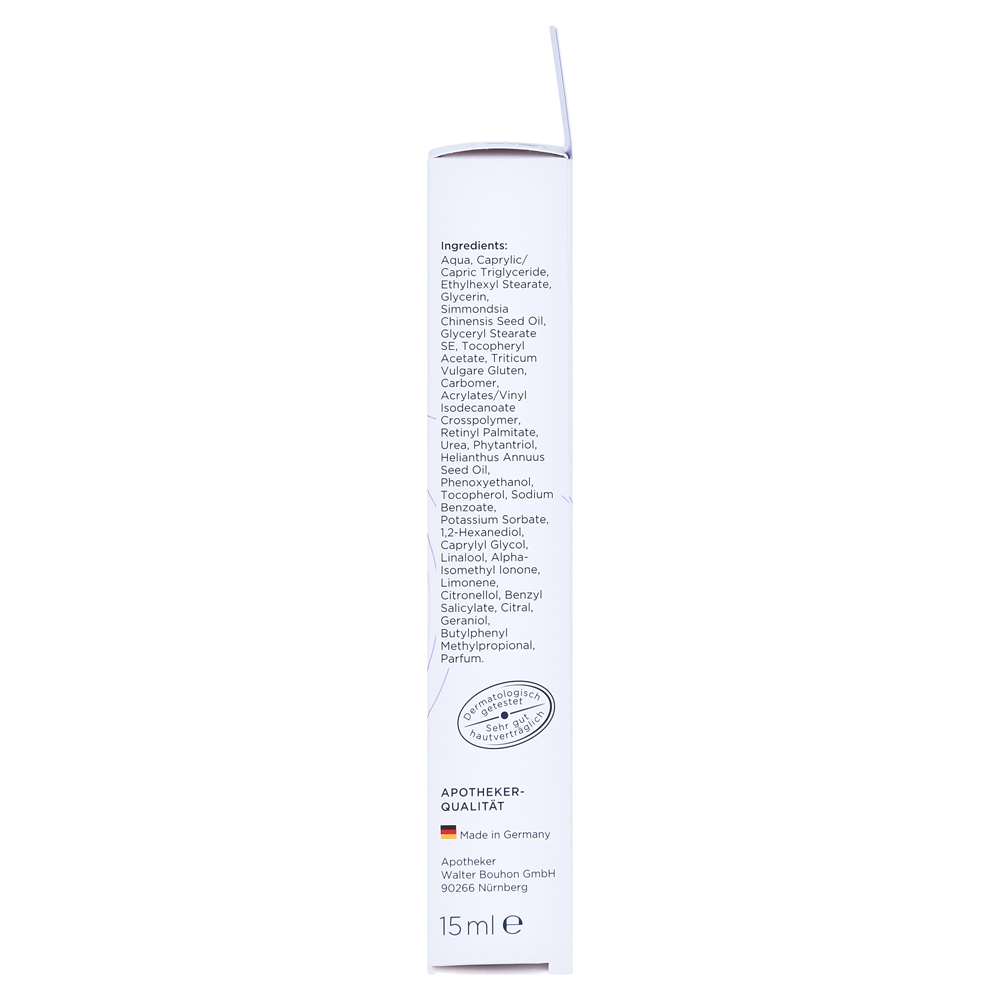 Jojoba нефть и боревец укрепляют кожный барьер и пантенол успокаивают и расслабляют кожу. Неприятные чувства натяжения, а также морщины или шутка сухости могут быть уменьшены.