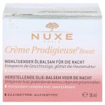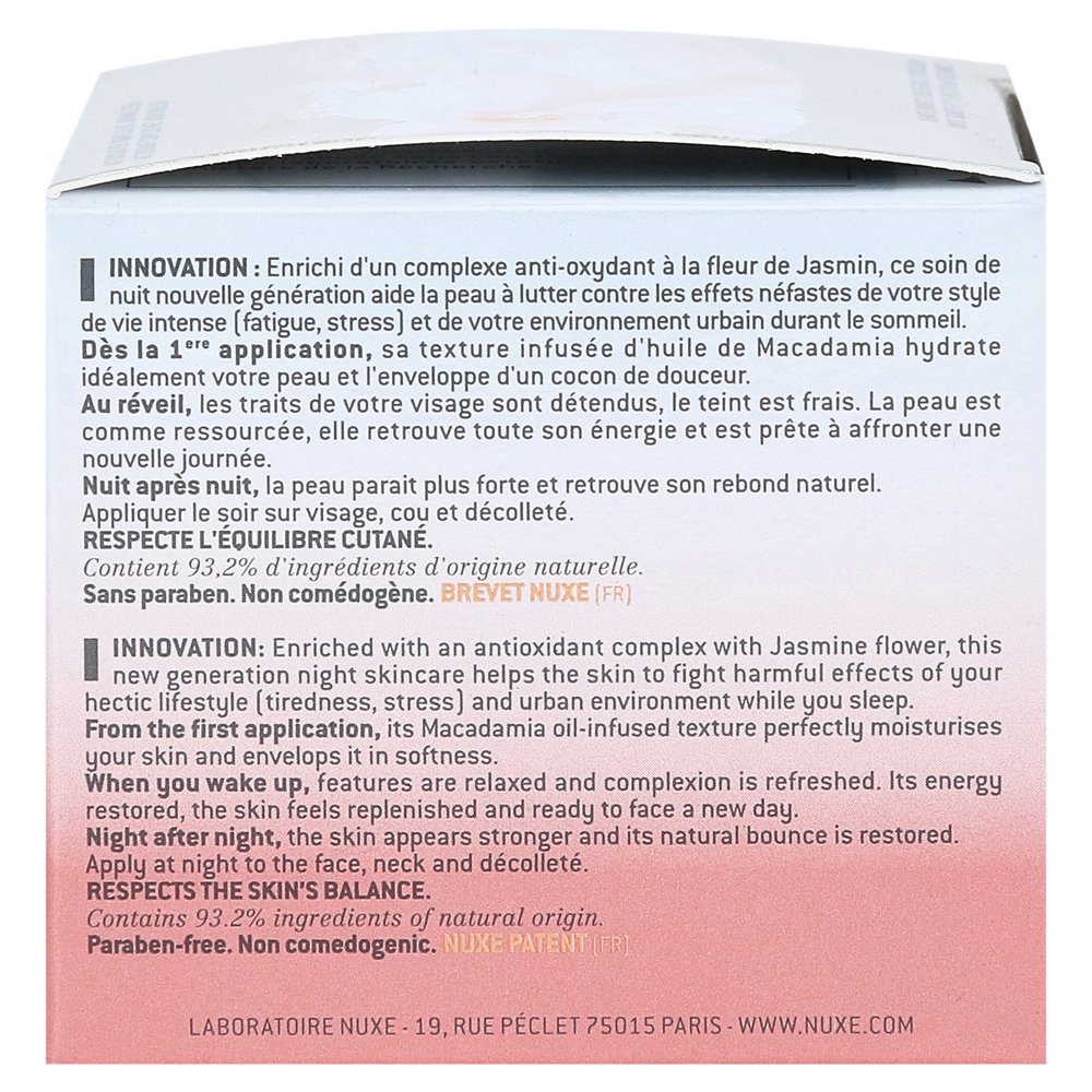 Nuxe Cream ProdigueUse Boost Boost Успокаивающаяся бальзам для ночных работ с антиоксидантным комплексом жасминовых цветов против стресса, усталости и грязи. В то же время нефтяной бальзам стимулирует регламент кожи во сне.