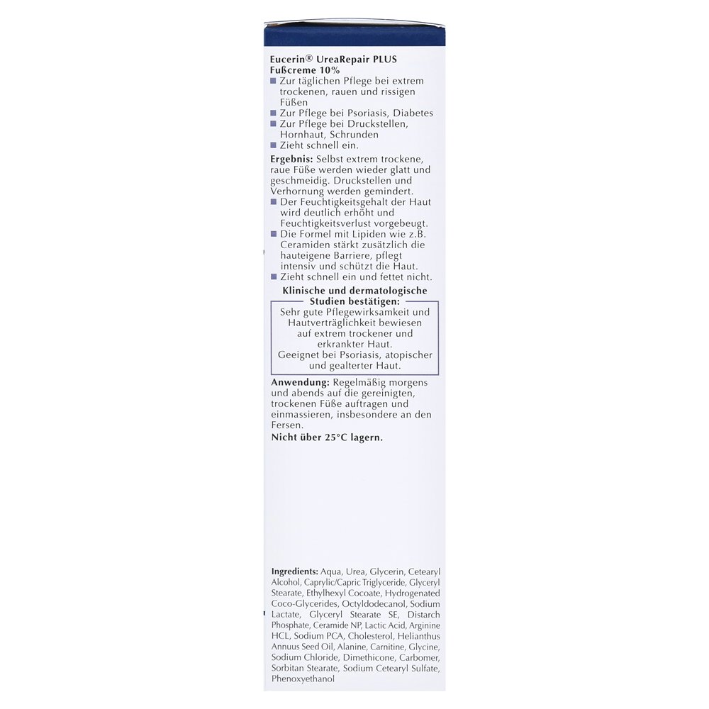 Богатый Eucerin WreaArpair плюс крем для ног 10% поддерживает высохнуть до чрезвычайно сухих футов интенсивно и постоянно защищает от персонажей сухой кожи. Кожный барьер усилен, а также точки давления и цепь снижены. Особенно подходит для ухода за ногами с диабетом.