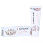 Рука вручает ручной крем плюс предлагает ваши руки интенсивными и долгосрочными заботами.
