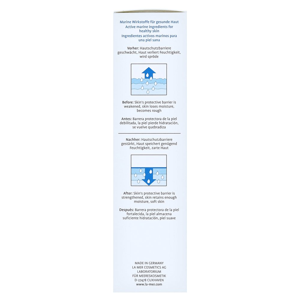 Бальзам для защиты рук La Mer Mer Mer укрепляет естественный барьер защиты кожи и гарантирует, что кожа поставляется на влаге. Содержимый комплекс по уходу на морской помощи от экстракта Seasheet, зеленый экстракт ALGA, морская соль и другие питательные активные ингредиенты удовлетворяют потребности чувствительной кожи. Хлопковое семянное масло осторожно надевает на кожу и защищает их от внешних воздействий. Напряженные чувства снижены и сухой, треснутая кожа становится здоровой, мягкой и более гладкой.