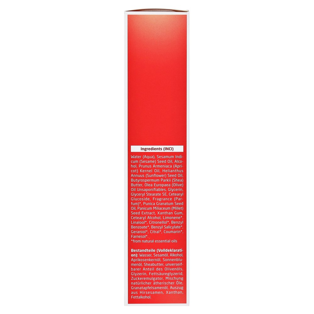 Ценная композиция с органическим семенным маслом граната, абрикосовым маслом и маслом и шипом абрикоса действует антиоксидант и защищает от повреждающих воздействий окружающей среды. Сложная кожа побеждает силы и чувствует гладкую.