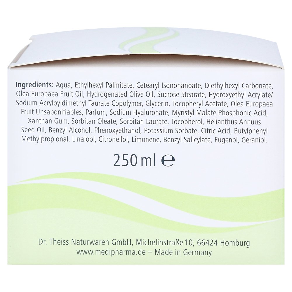 Бальзам оливкового масла интенсивно-тела содержит в дополнение к высококачественной нефти, витаминам Е и ценной гиалуроновой кислоте. Активные ингредиенты пожертвуют в течение 24 часов интенсивной влажности и могут защищать кожу от обезвоживания. Кожа устойчивается, конструкция улучшается.
