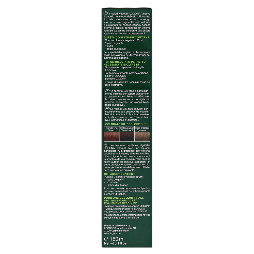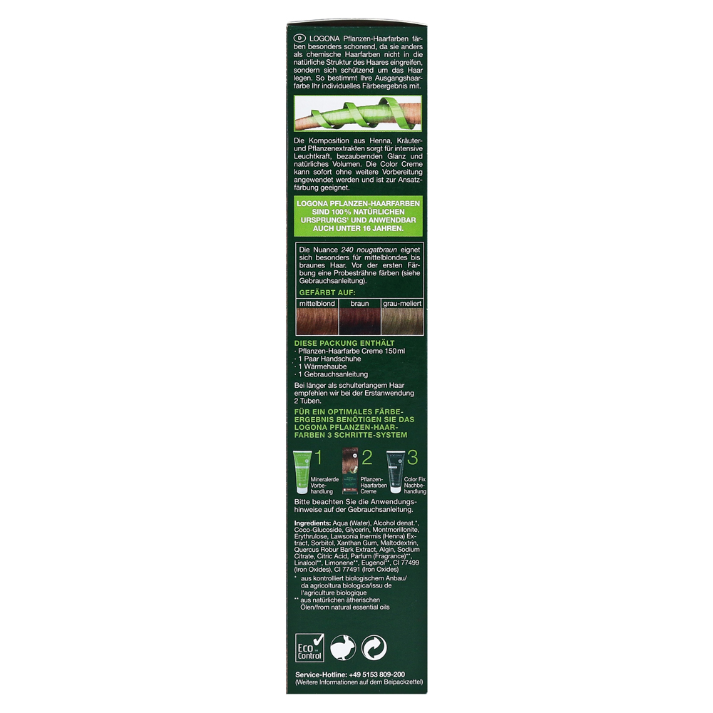 Цвет волос для волос Logona Brown особенно подходит для каштановых волос средних блондинков. Он состоит из 100% ингредиентов естественного происхождения и поэтому может быть использовано в возрасте до 16 лет.