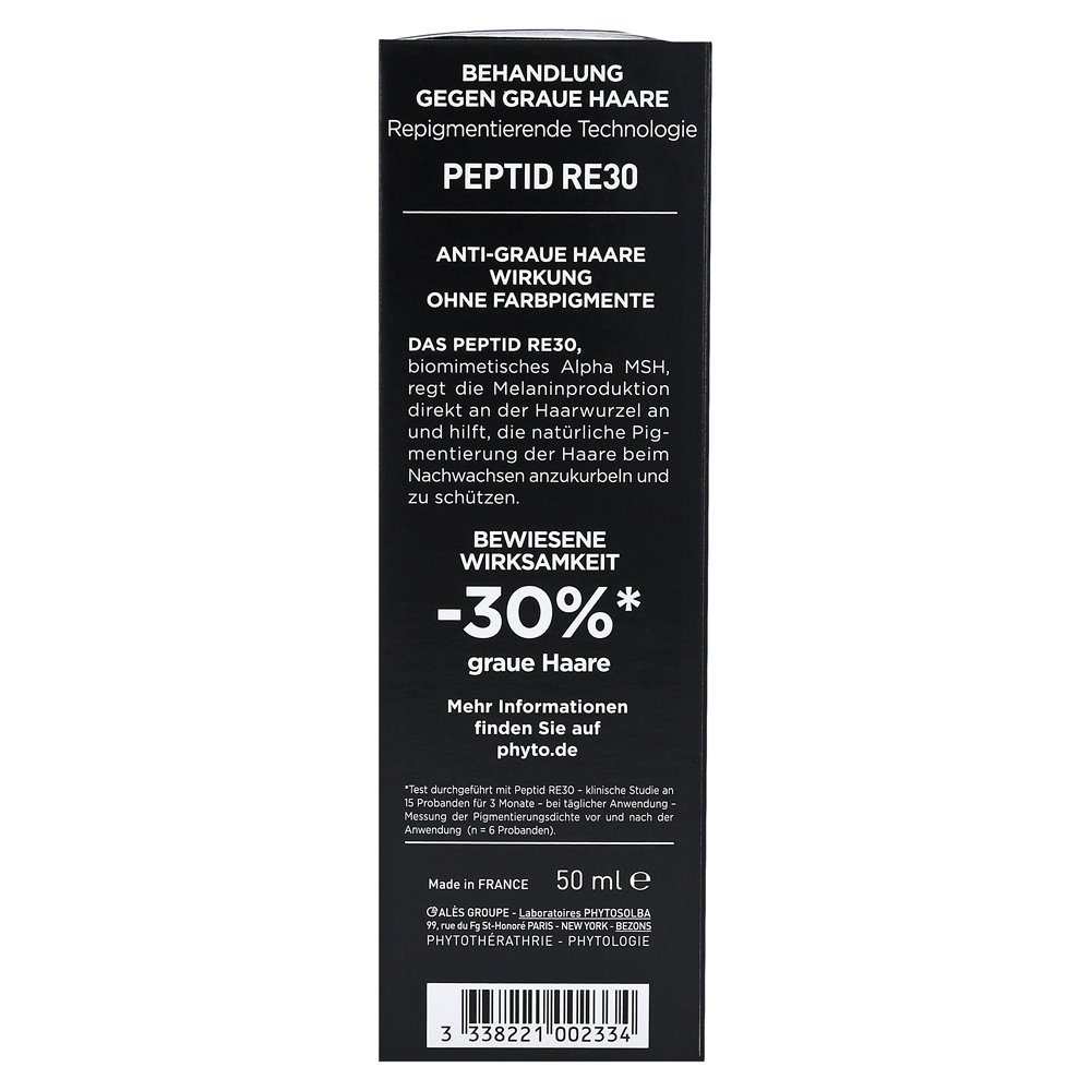 PHYTO RE30 содержит пептид RE30, который стимулирует производство меланина непосредственно на корне волос, даже если волосы уже седые. Пептид RE30 не только стимулирует естественную пигментацию волос, но защищает волосы даже до глубины, уменьшая производство перекиси водорода.