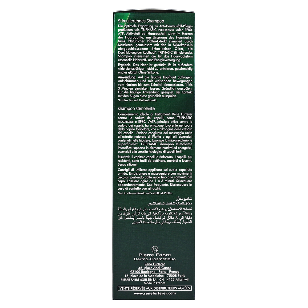 Стимулирующий шампунь является идеальным дополнением к продуктам потери против волос и содержит эффективные активные ингредиенты Pfaffia Extract и эфирные масла апельсина, лаванды и розмарина.