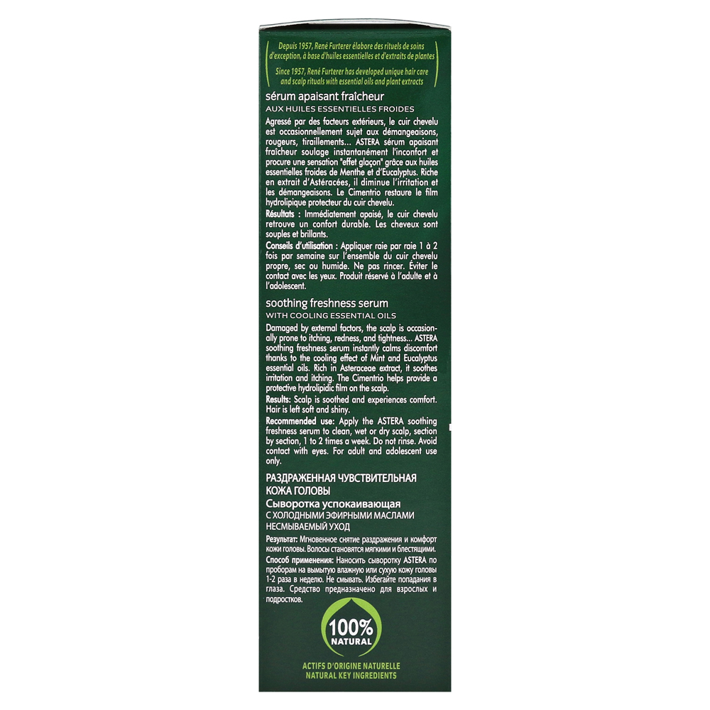 Освежающая очистка с мягким ароматом: нежный шампунь снимает раздражен кожу головы с экстрактом астерецеаэ. Он нежно очищает, уменьшает раздражения и противодействует стрессовым чувствам.