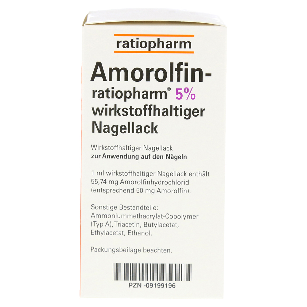 Amorolfin-RatioPharm 5% активный вещество, содержащий ногтей для ногтей — это медицинский, прозрачный лак для ногтей и может ингибировать рост грибка для ногтей, уничтожив грибковый рукав, и в конечном итоге позволил грибную полностью умирать.
