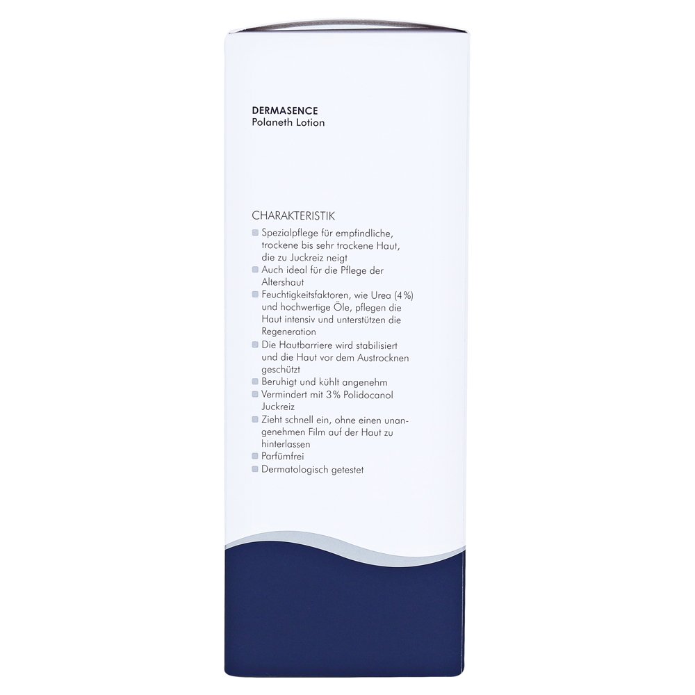 Dermasence Polaneth Lotion — это без парфюмерного лосьона, специально для очень сухой кожи, а также возрастной кожи. Это уменьшает восприятие и злоумышленность зуда. Влаго-регулирующие свойства и высококачественные травяные масла защищают от обезвоживания.