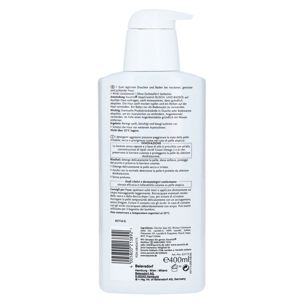 Eucerin Atopicontrol Душ и масло для ванны, нанесенные на влажную кожу. Аккуратно массаж, а затем тщательно промойте. Накопить кожу полотенцем, нежно сухим, не потрите.
