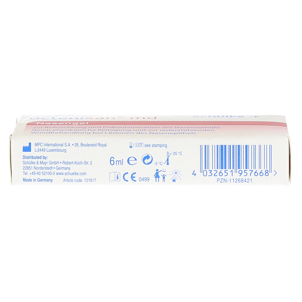 Octenisan MD Nasal Gel увлажняет, очищает и дезактивирует в носу помещения. Если нос высушен и раздражен, то Ocentisan MD пожертвовает носовой гель влаги. Кроме того, гидрогель способствует поддержанию физиологических бактерий Милии могут стать настолько бедными.