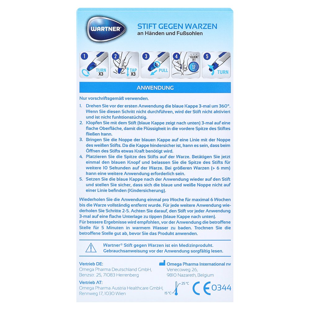 Ручка содержит высококонцентрированный гель для удаления бородавок: высшие слои кожи высвобождаются, в результате чего предусмотрена предусмотренная для деталей. В то же время продвигается обновление клеток кожи, и он образует новую, здоровую кожу.