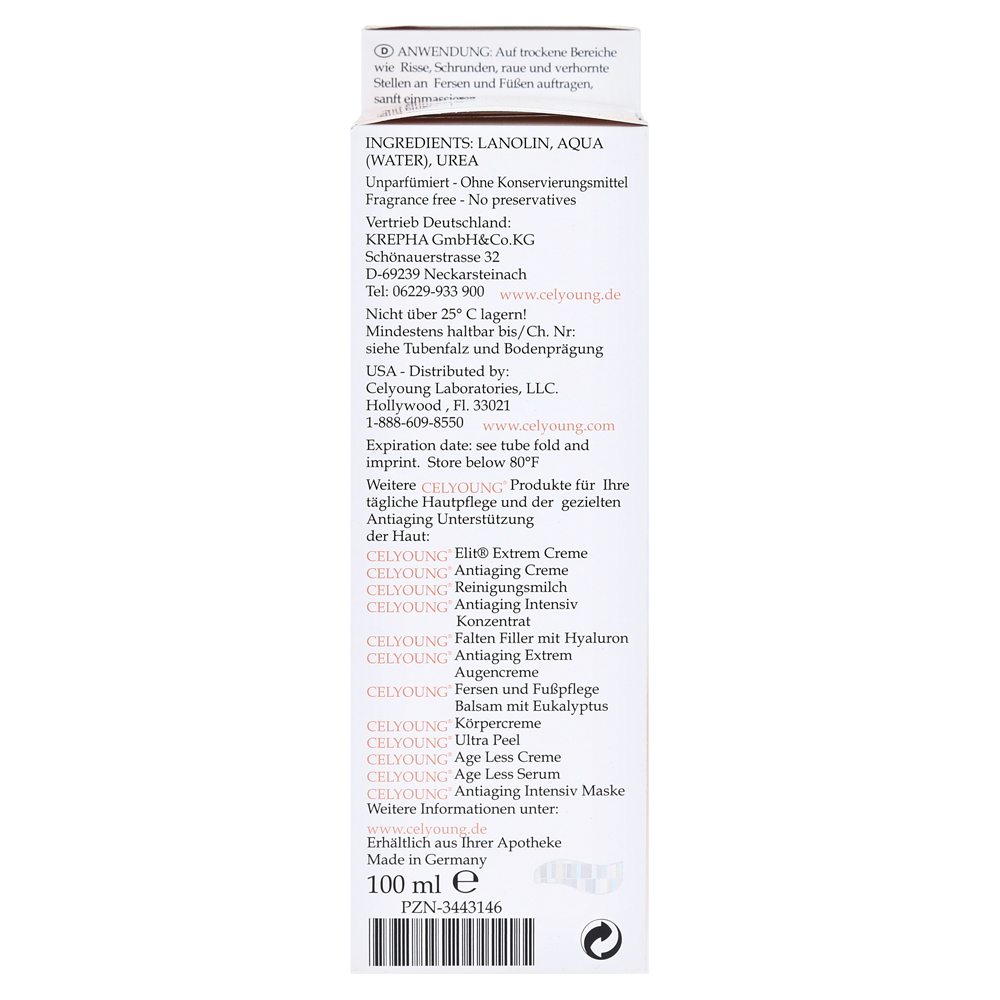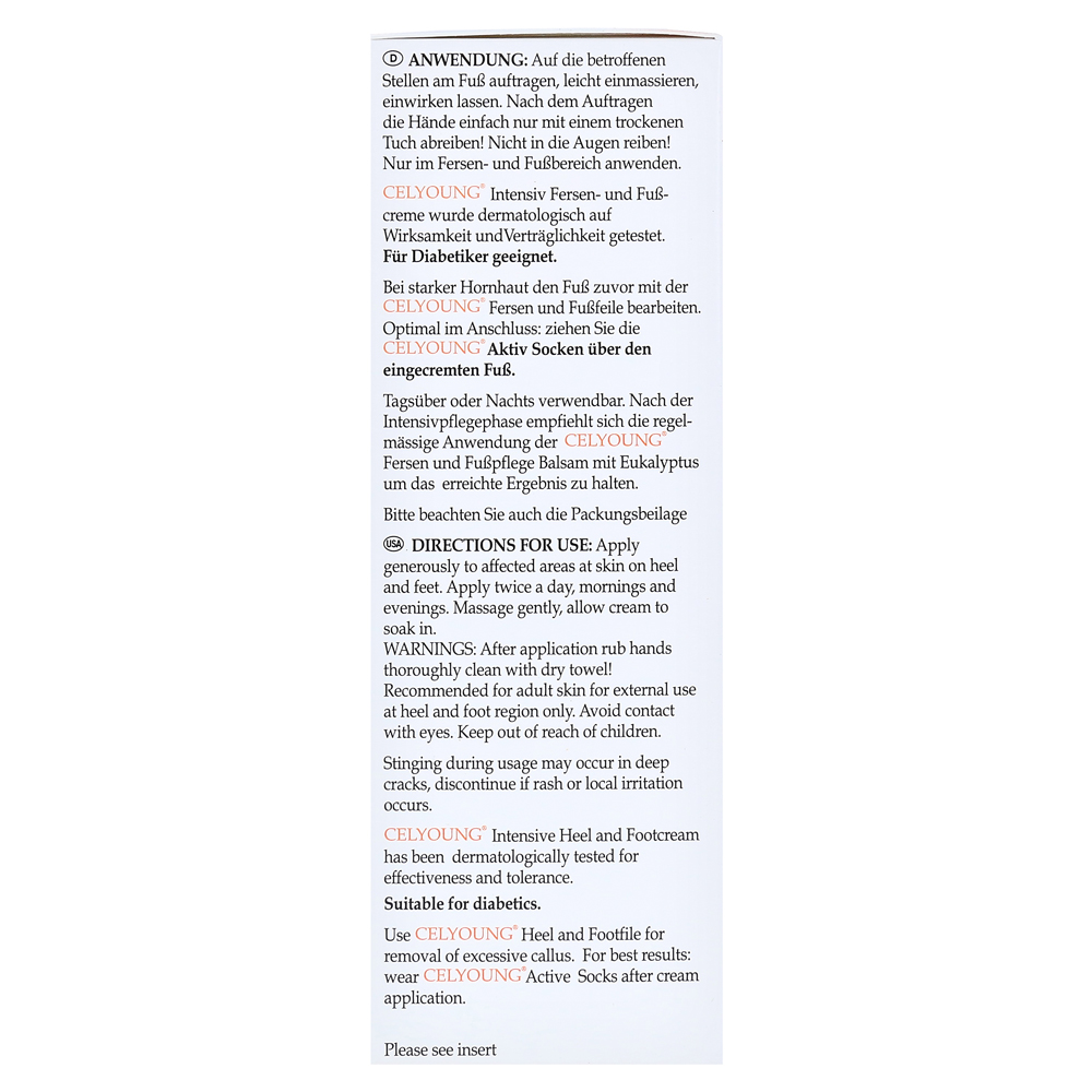 Вот почему ноги регулярно побаловать и поддерживают! Celyoung интенсивный крем для каблуки и ноги подходит для ухода за очень сухими ситами, а также интенсивно лечение треснутых каблуков и кожуха.