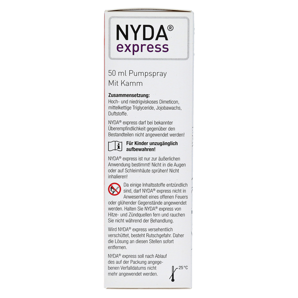 Строки и волосы тщательно распыляют с NYDA Express и массаж в волосах и кожу головы. Оставьте на 10 минут. Через 10 минут мертвые вши и ниты с расчесами ткани из вытянута волос. Вымойте волосы шампунем.