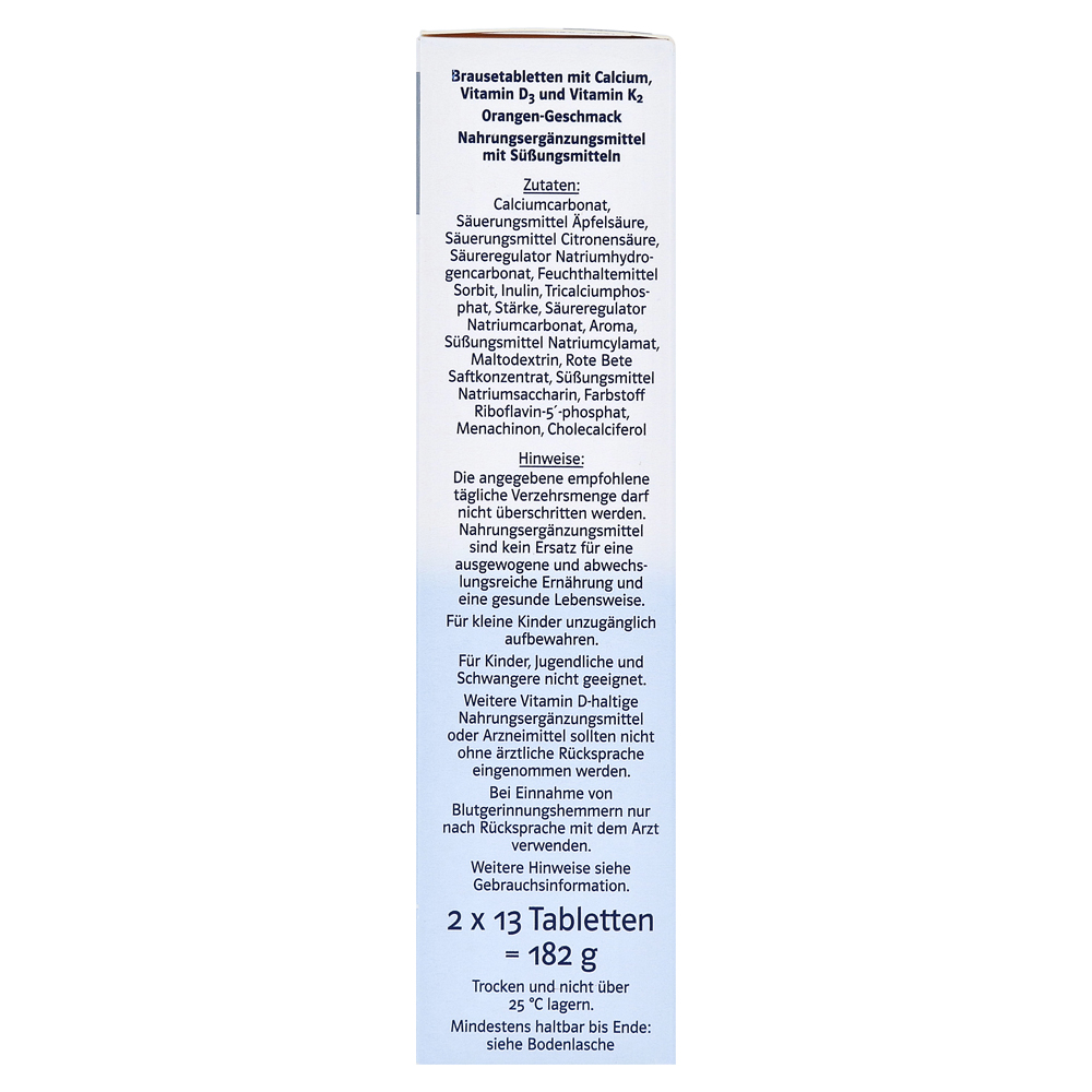 Шипучие таблетки двойных сердец содержат как кальций, так и витамин D и K для нормальной консервации костей и вкус фруктового до оранжевого.