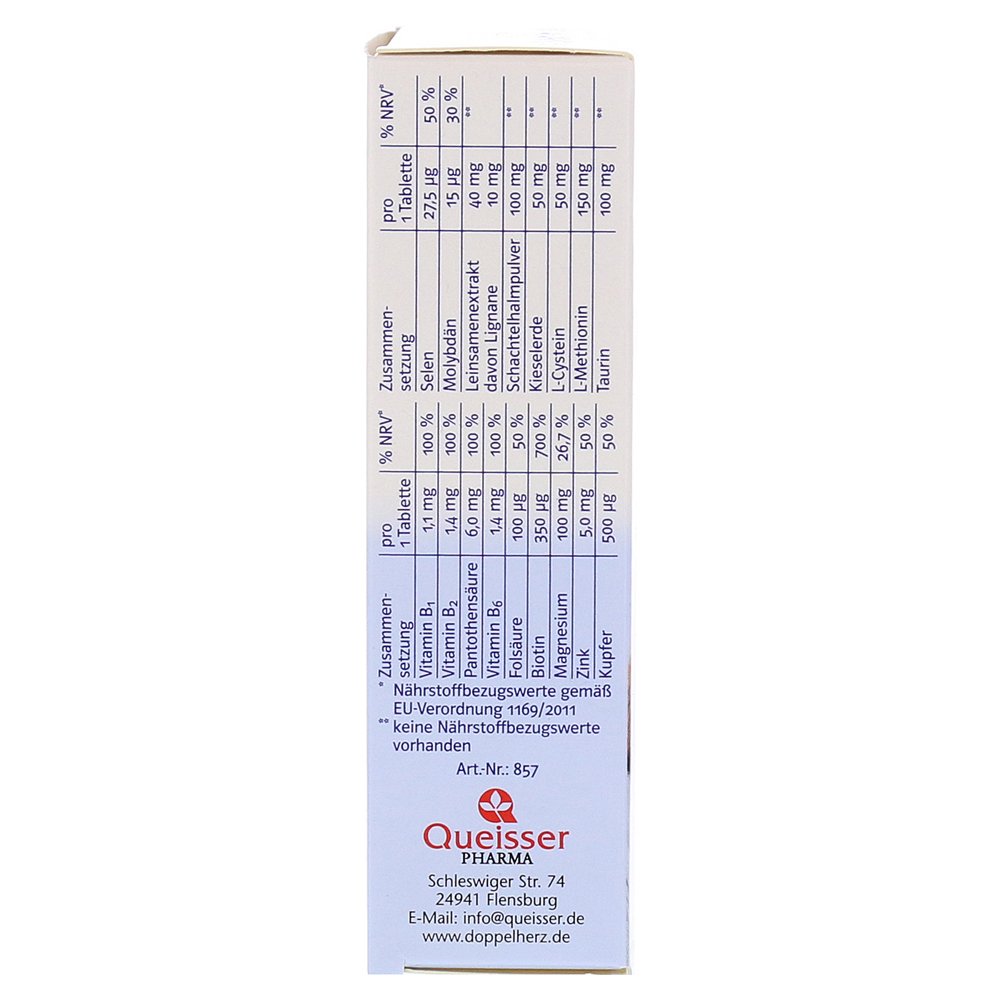 Двойная сердечная система волос плюс содержит выбранные витамины B, магниевый и 4 следовые масла. Планшет дополнительно содержит кремнезема, линьганы из экстракта льняного сечения, порошок Baypoint, L-цистеина, L-метионина и таурина.