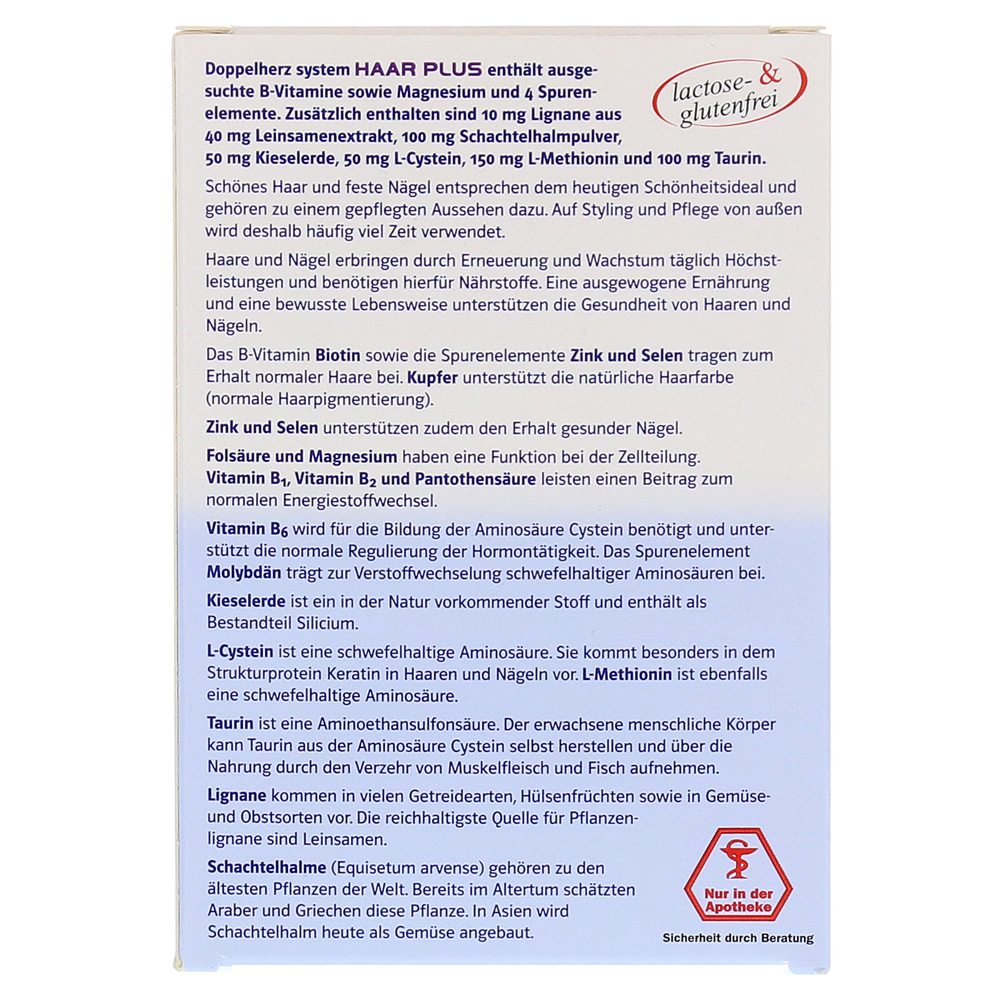 Двухместный сердечный системный волос плюс включает в себя комбинацию выбранных витаминов B, а также магниевые и микроэлементы цинка, меди, селена и молибдена.