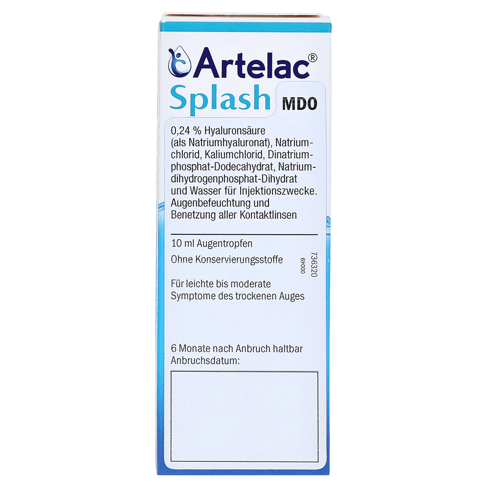 Artelac Splash MDO доступна неразумно в многоподъемных OPHTES (MDO), которая позволяет точное дозирование каждой капли из-за запатентованного механизма накачки.
