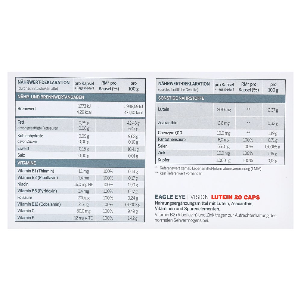 — содержит 20 мг свободного лютеина и 2,8 мг Zeaxanthin