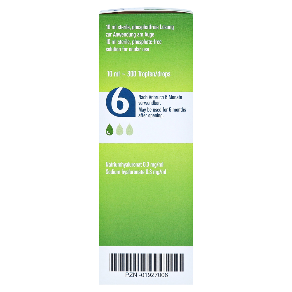 Hylo-Fresh также содержит 0,03% гиалуроновую кислоту, в дополнение к экстрактам эвфрасии, для успокаивающего и эффективного увлажнения поверхности глаз.
