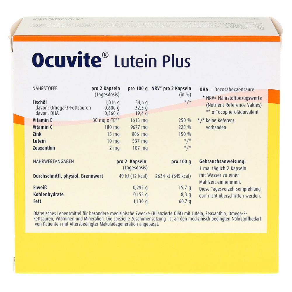 OCUVITE не является полной едой и, следовательно, не заменяет сбалансированную и разнообразную диету. Применять только при медицинском надзоре.