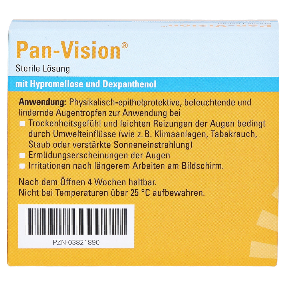 Описание: Pan Vision представляет собой стерильный водный раствор с 0,3% гипромеллозом и декспантенолом для смачивания поверхности глаза. Для здоровой и оптимальной функции глаза, конъюнктивация и роговица всегда должны быть влажными. Только таким образом может быть раздраженный дискомфорт. Pan Vision имеет физические эпителиальные защитные, увлажняющие и питательные свойства. Это устраняет сухость и легкое раздражение глаз из-за воздействия окружающей среды, таких как. z. B. Под кондиционером, пылью и нагрузкой через солнечное излучение или для усталости и длинной работы. Pan Vision имеет следующие химические физические свойства: он содержит чистую жидкость, которая растворима во всех частях. Нет осадков металлических солей или органических остатков, которые могут входить в собственную слезующую жидкость организма. PH идеально совместим с ткани для глаз и разрывой жидкостью. Следовательно, Pan Vision особенно хорошо переносится и быстро устраняет раздражающую сухость. Кроме того, Pan-Vision содержит DEXPANTHONOL, который имеет как защитку физического эпителия, а также заботливые свойства. Таким образом, увлажняющие свойства гипромеллоза, таким образом, осмысленно поддерживаются.