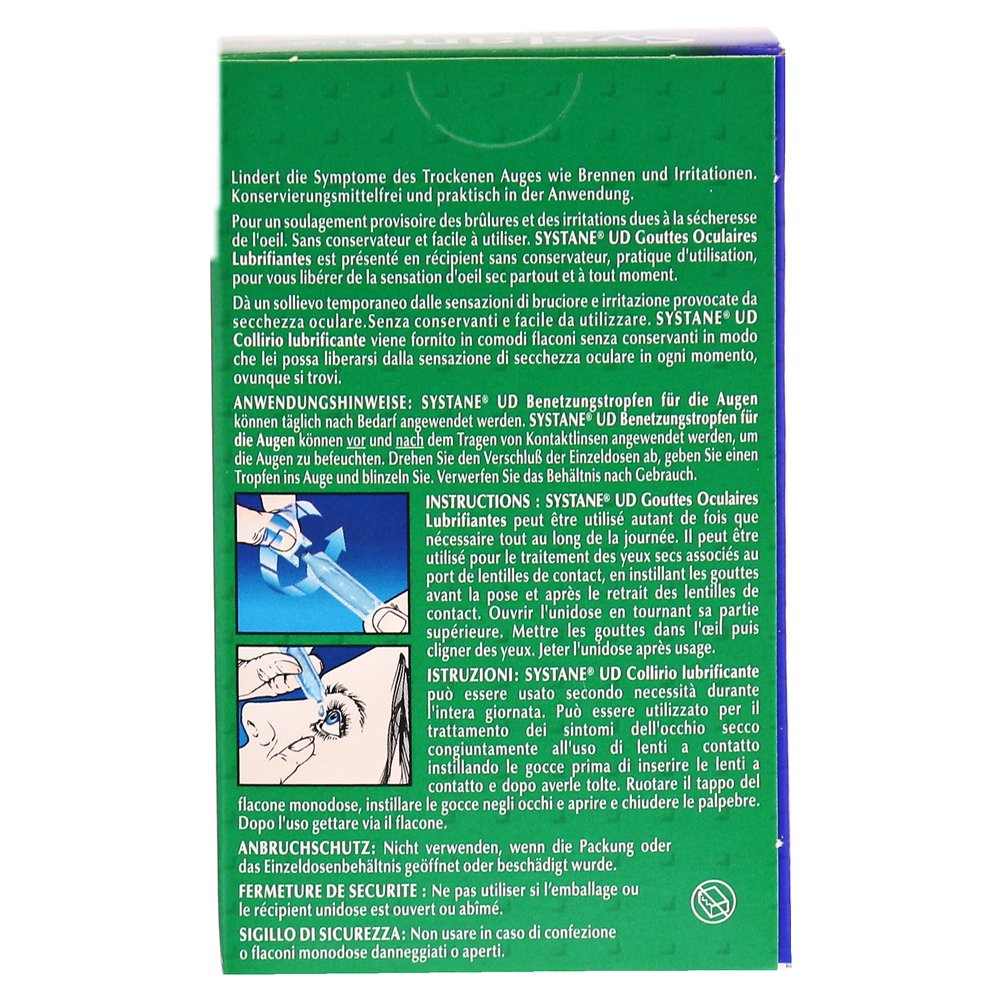 Увлажняя поверхность глаз, Systane обеспечивает быструю и длительную рельефную рельеф в сухость, раздражение, горение, устойчивость и песчаное зерно или внешнее тело. Эти жалобы могут быть вызваны воздействиями окружающей среды, такие как пыль, дым, озон, ультрафиолетовые лучи, сухое тепло (отопление / сауна), кондиционер, ветер, черновики и косметика или возникают из-за уменьшенного частоты ресниц, которые могут быть вызваны длинными Телевизор или концентрированные экранные работы.