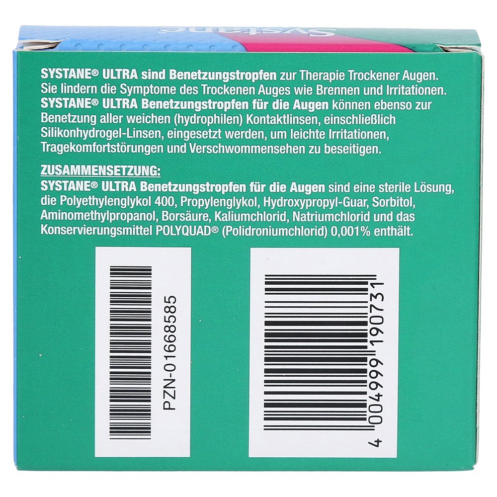 Systane Ultra смачивание для глаз предлагает максимальный комфорт и длительный эффект, чтобы облегчить жалобы на сухие и раздраженные глаза. Они легко распределяются на поверхности глаза и не влияют на вид. Оптимизированный рН генерирует нежное и освежающее чувство для людей с сухими глазами.