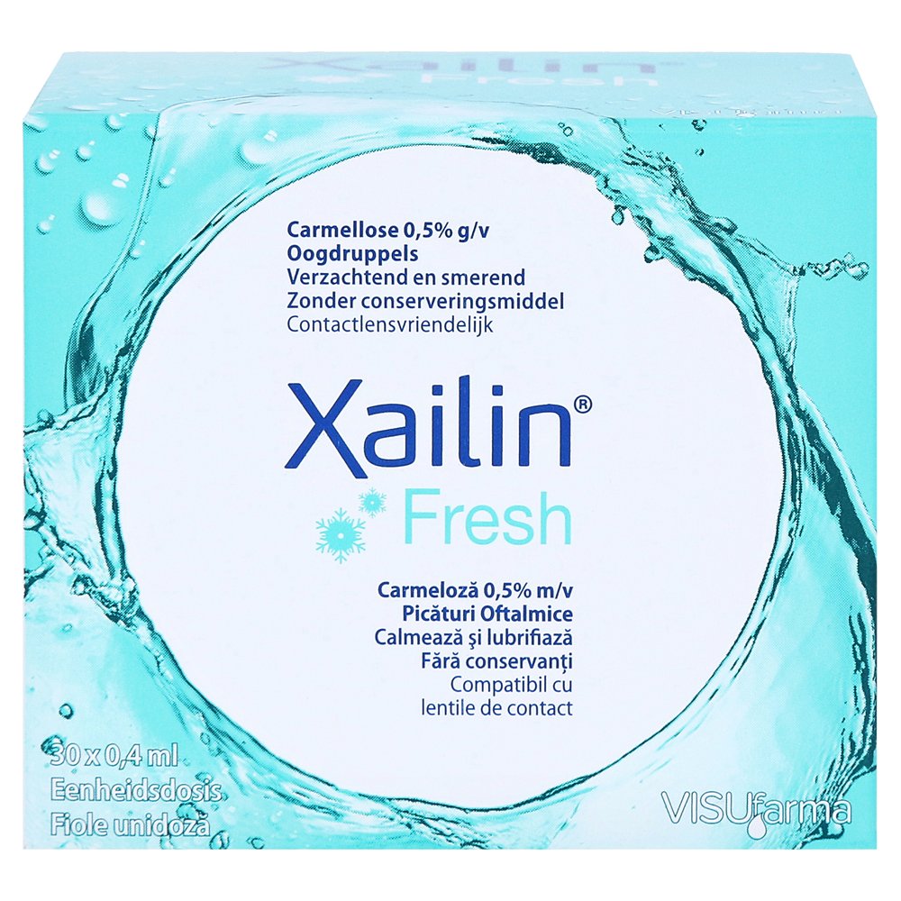 Xailin Fresh — смачивание капель в безразрешенных отдельные дозы (30 × 0,4 мл) для пациентов с случайными или постоянными симптомами сухого глаза. Как например, ожог, жало, боль, зуд, слезы или ощущение песчаного зерна.