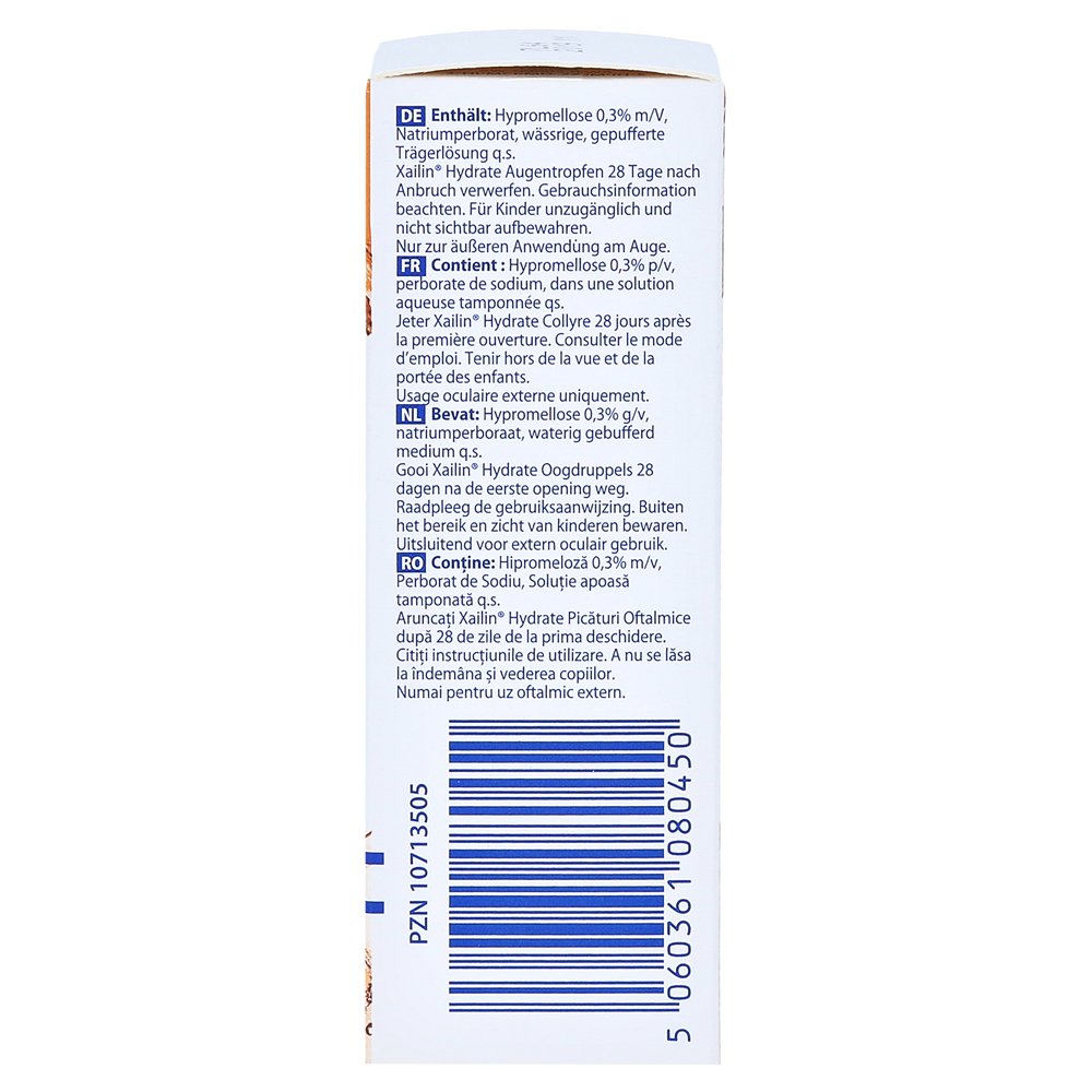 Через содержащийся гипромеллез 0,3%, толщина слезной пленки пополняется поглощением воды, что приводит к длительному времени увлажнения на роговице. Хейлин гидрат подходит для носителей контактных линз, а также очень экономично.