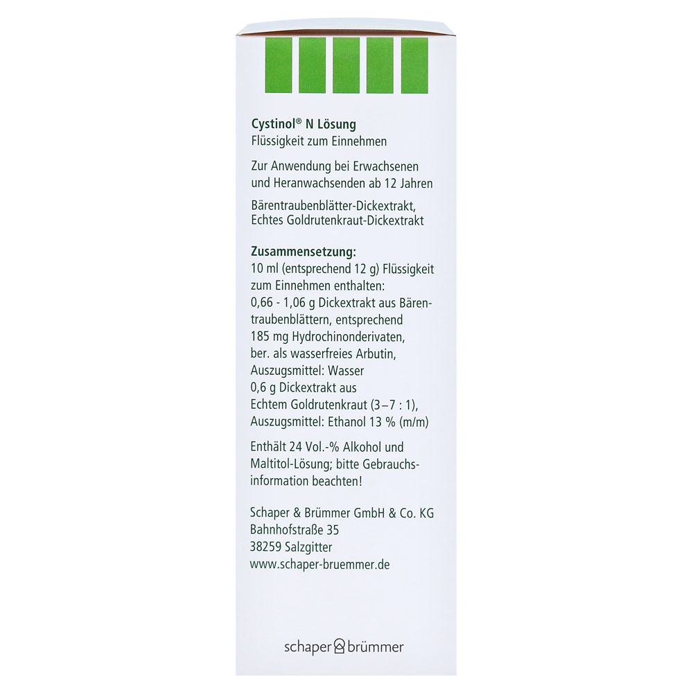 Решение Cystinol N содержит серые листья медведя и сухой экстракт и подлинной травы золота. Он служит для использования с острыми несложными инфекциями мочевыводящих путей, таких как раздраженный пузырь. Решение может облегчить жалобы и ускорить курс исцеления. Графина Goldren выглядит сложной и противовоспалительной на раздраженных мышцах и слизистой оболочке пузыря.