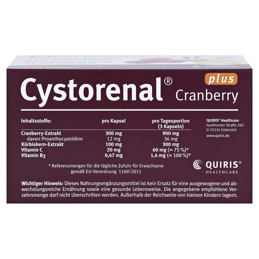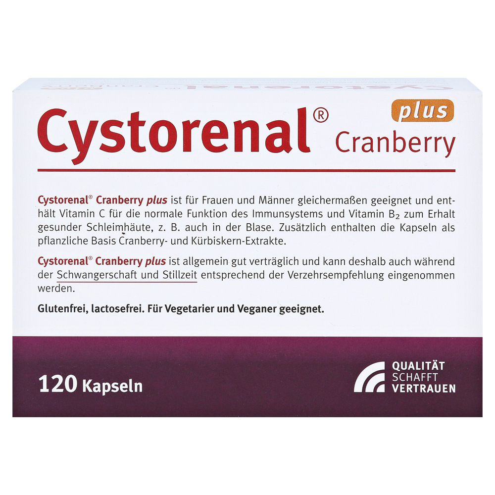 Капсулы Cystorenal Cranberry Plus предназначены для женщин и мужчин. Из-за хорошей переносимости капсул Cystorenal Cranberry Plus приложение также возможно во время беременности и лактации.