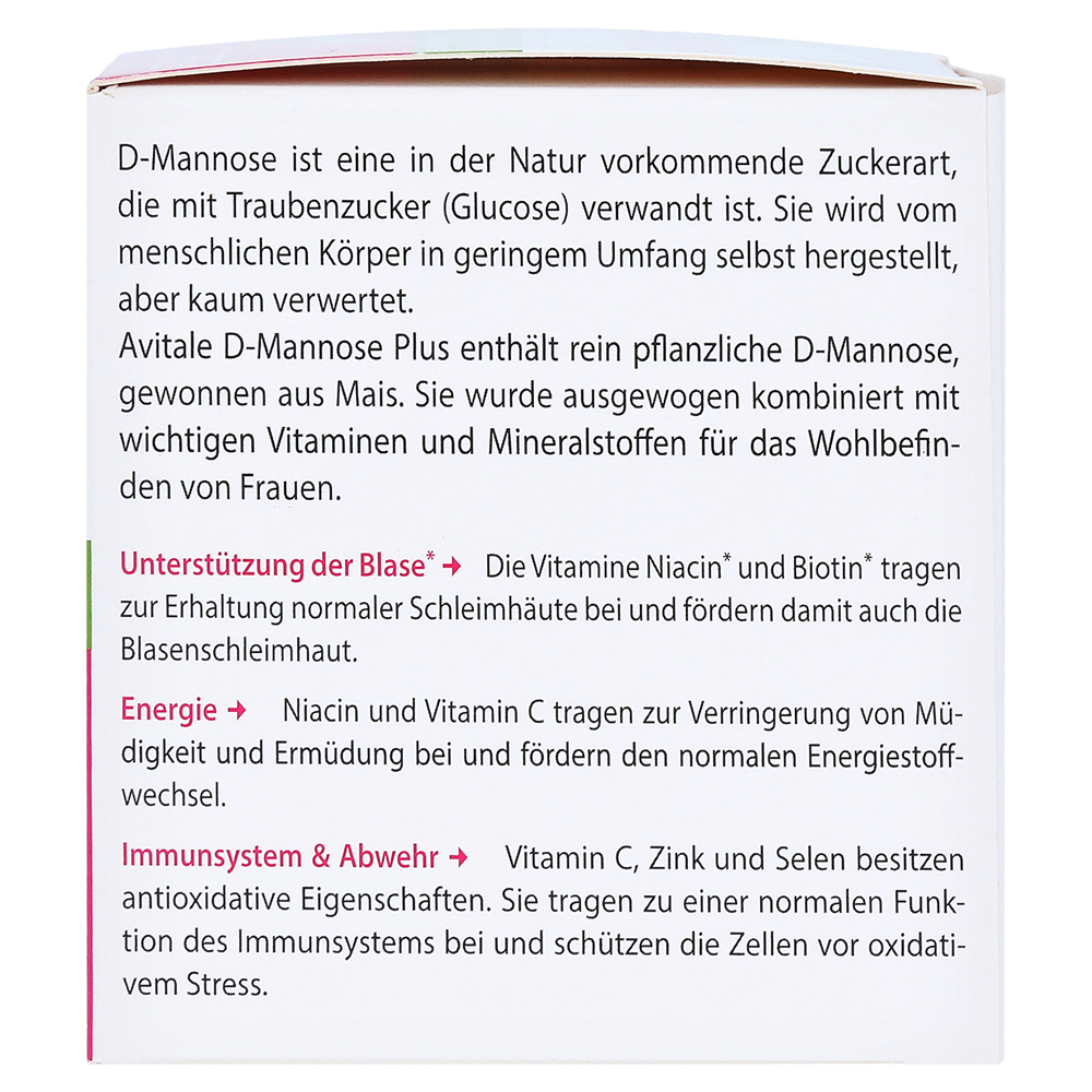 Порошок Avital D-Mannose Plus представляет собой пищевую добавку с чисто растительным D-маннозой, витамином С, цинком, селеном, а также биотином и ниацином.