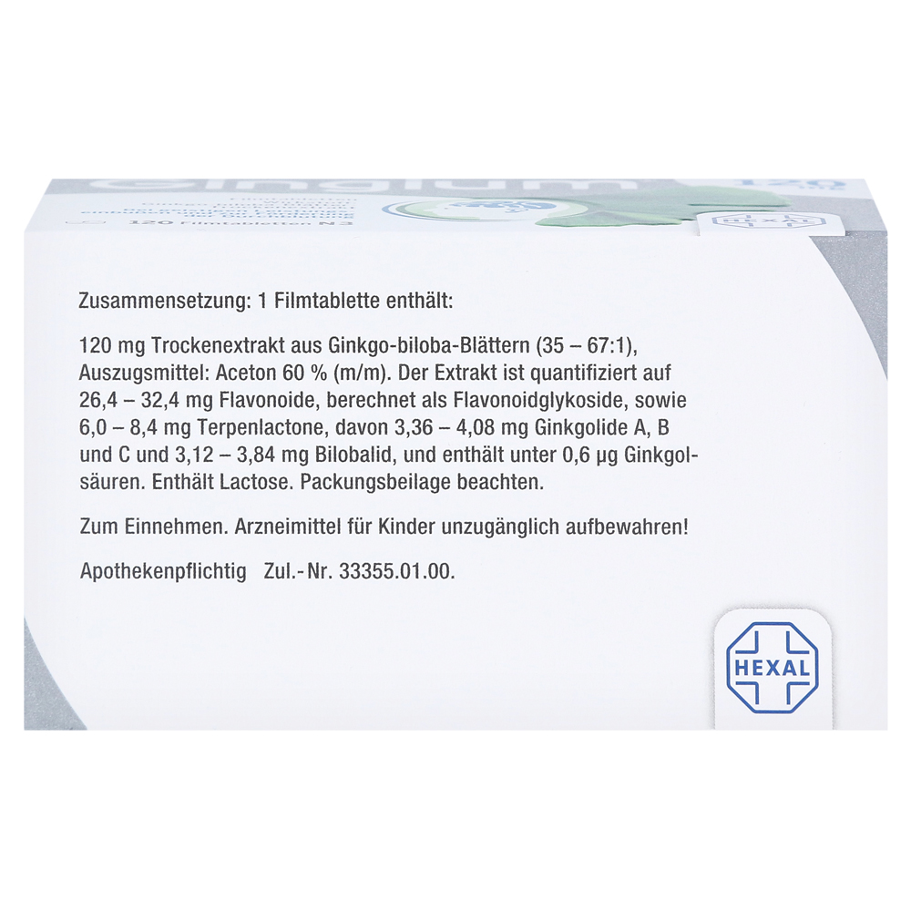 Планшета пленки содержит 120 мг сухого экстракта из листьев гинкго-билоба.